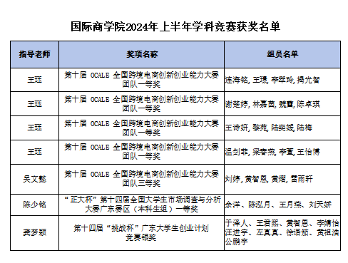 国际商学院2024年上半年学科竞赛获奖名单(黄凤娟 提供)