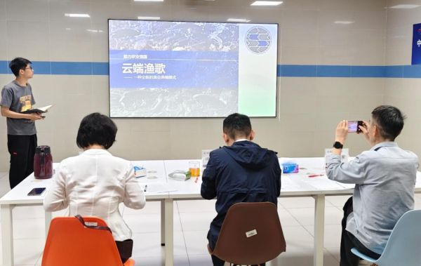刘芳丞介绍“高密度养殖设备及监控系统”项目基本简介(陈梦迪 摄)