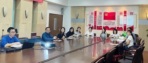 吴丽镐(左一)组织教研室老师召开座谈会现场(吴丽镐 供)